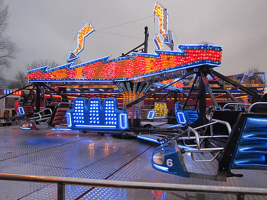 The Twister is known by many other names - the Scrambler, the Twist, the Merry Mixer or the Sizzler are just some of them - but the concept of the ride is always the same. Riders sit in a carriage with their friends and family and are spun round two central axles, which keeps them glued into their seats through centrifugal force (and - of course - a mandatory safety harness). Your carriage spins in one direction, and the ride spins in the other direction, creating a dizzying experience that is fun for all ages.