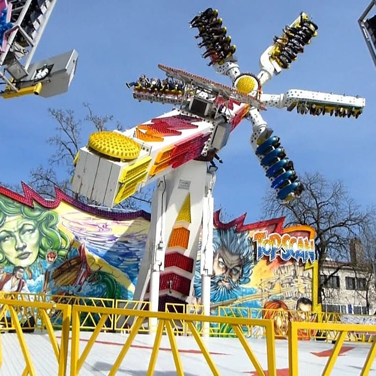Our Top Scan ride is not for the faint hearted! This thrilling white knuckle ride is great fun for those who love a thrill. Jump into the swing, strap yourself in and hold on tight as the ride swings back and forth while spinning you around and around. Prepare yourself for high-octane and adrenaline-pumping fun as the Top Scan / Top Buzz takes you upside down while rotating wildly in the air.
