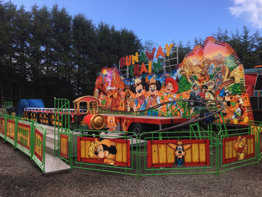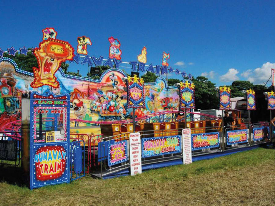 Jump into the cart and ride along the tracks on the Mine Train - Runaway Train. Hold on tight as the train goes up and down the hills and back around the track. This ride is great for young children who want to try their first bigger ride but adults can also ride with young children. The ride is decorated with children's favourite characters and it has bright lights around the track, so it's an attractive feature at all kinds of events, including fetes, festivals, kids' parties and much more.