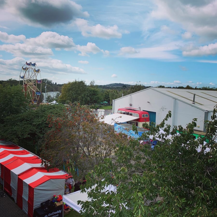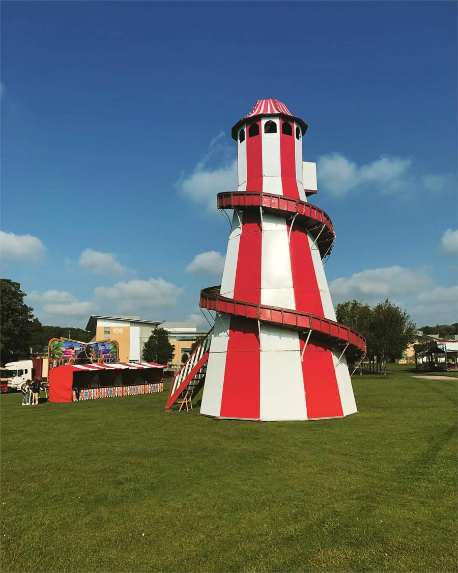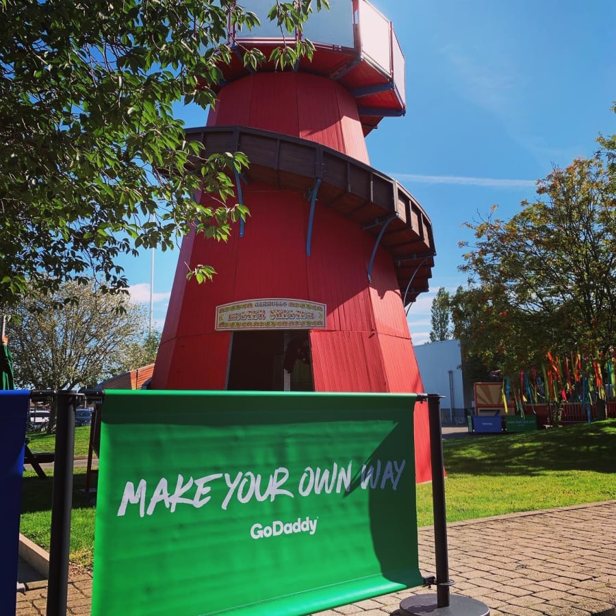 We were providing corporate event hire in Northamptonshire for GoDaddy's office relocation party! This included our vintage dodgems, a Helter Skelter, Ferris Wheels and some funfair side stalls.